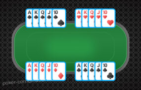 Роял-флеш: 10♠️ J♠️ Q♠️ K♠️ A♠️.