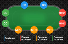 Позиция — сила. Поздние места вроде баттона дают преимущество. Видят действия других и решают последними. Ранние позиции требуют осторожности — играют только топ-карты.